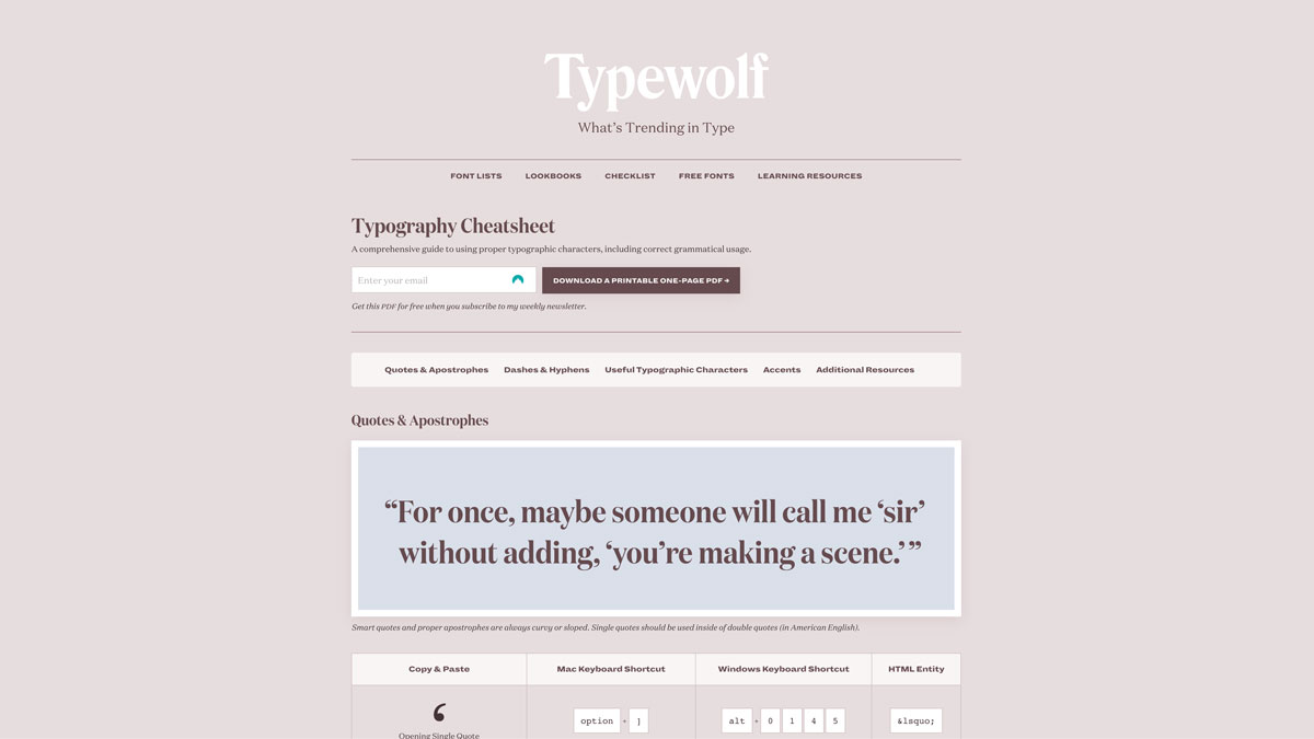 Typewolf Typography Cheatsheet